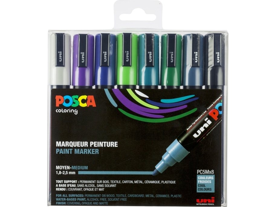 POSCA Markerset PC-5M, 8 kühle Farben