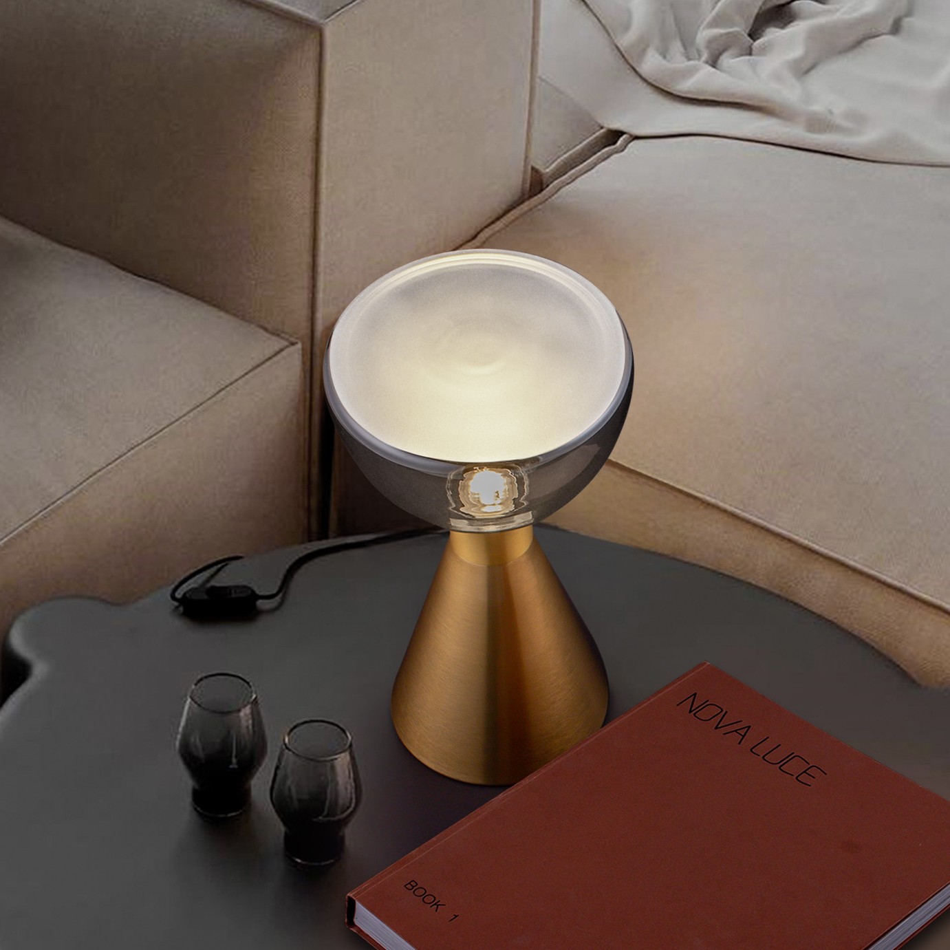Nova Luce Voi - lampe à poser - 17 x 32 cm - 8W LED inclus - laiton doré et verre fumé