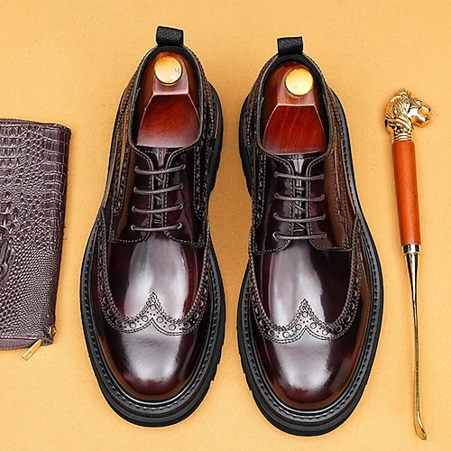 scarpe eleganti da uomo in vera pelle con punta a coda di rondine, classiche scarpe formali marroni con lacci per ufficio, banchetti e matrimoni