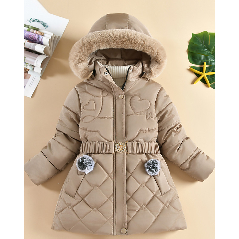 Kids Girls' Down Coat Heart Fashion Zipper Pocket School Coat Outerwear 4-12 Years Fall Black Pink Wine