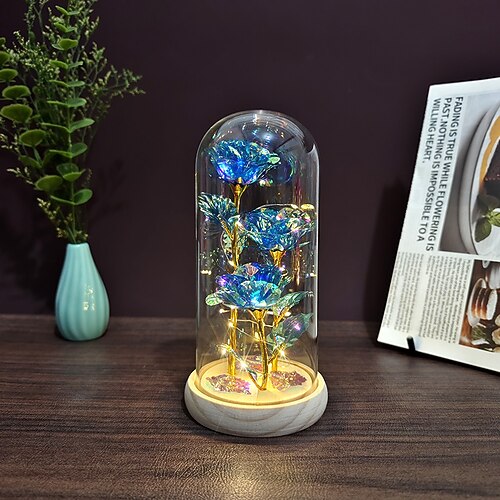 Fiori Artificiali Rosa Eterna Rosa In Vetro Led Cupola Decorazione San Valentino Regali Donna Fidanzata Moglie Festa Della Mamma Matrimonio