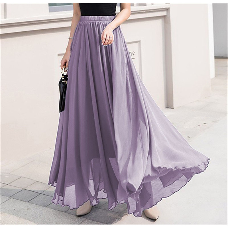 Women's Skirt Swing Work Skirts Long Skirt Maxi Skirts Chiffon Solid Colored Office / Career Daily Spring Summer Chiffon Elegant Long S