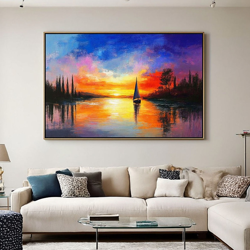 oil painting handmade Original Nautical Oil Painting on Canvas Large hand painted painting Wall Art Abstract Sailboat Painting Sunset Landscape Art Minimalist Living Room Home Decor