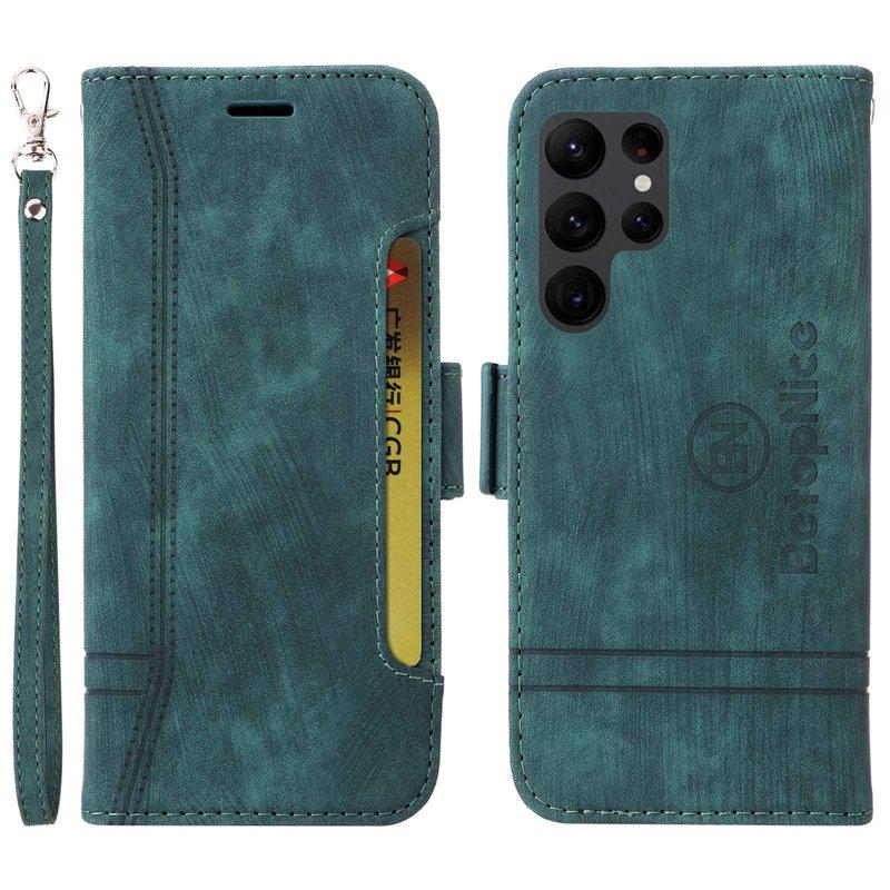 BETOPNICE 001 Samsung Galaxy S23 Ultra Plånboksfodral Konstläder - Grön