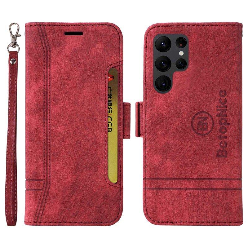 BETOPNICE 001 Samsung Galaxy S23 Ultra Plånboksfodral Konstläder - Röd