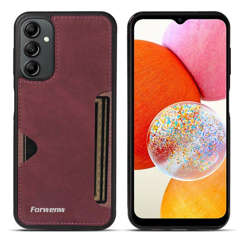 FORWENW F5 Series Samsung Galaxy A14 Fodral KonstLäder - Vinröd