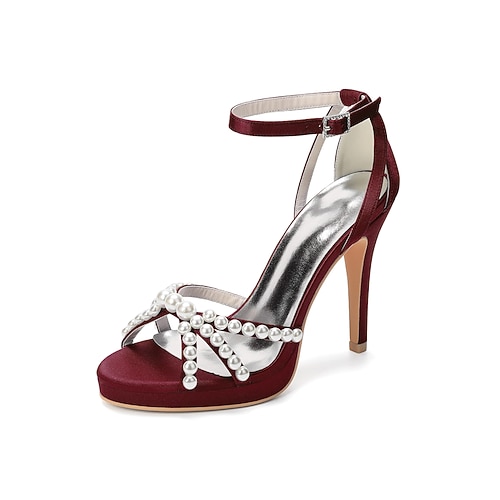 sandali da donna con tacco alto e cinturino alla caviglia in perle argentate, eleganti scarpe da sposa per matrimoni in città