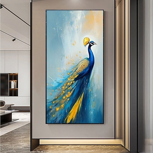 dipinto a olio fatto a mano con spatola, dipinto a olio di pavone blu, arte murale fatta a mano, dipinto originale di uccelli su tela, impressionismo, decorazione murale, dipinto moderno astratto,
