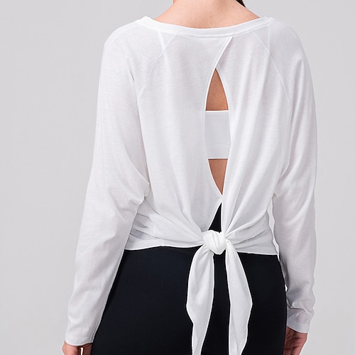 Per donna Abbigliamento sportivo Magliette da yoga T-shirt Fitness scollatura a V Traspirante Senza schiena Manica Lunga Gli sport Tinta unica Top Per Palestra Atletico Sportivo Vestibilità comoda