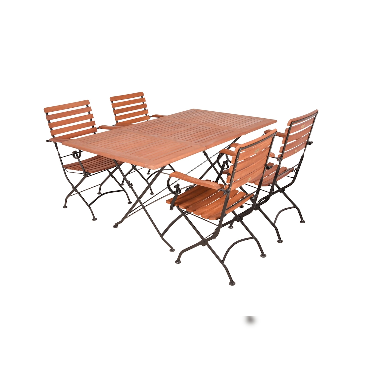 DELUKE Garten-Sitzgruppe TOR 5-tlg. - Eukalyptus, Schwarz, Mit Armlehne | Gartenmöbel-Set Gartengarnitur Garten-Essgruppe mit Stühlen und Esstisch