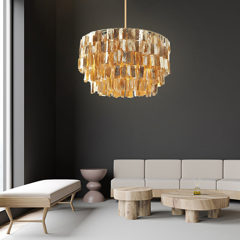 Grosse Hängelampe „Shell Reflections“ aus echtem Perlmutt 80 x 45 cm