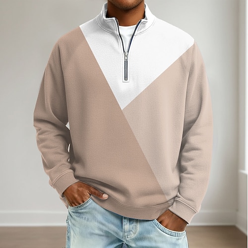 Herren Farbblock Poloshirts mit Reißverschluss Langarm Polo-Shirts Großvaterkragen Lässig Schule Athleisure Ferien Alltagskleidung 3D-Druck Viertelreißverschluss-Poloshirt Frühling Herbst Winter Blau