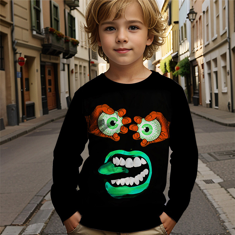 Boys Cartoon Funny Smile Face T shirt Tee Long Sleeve 3D Print Fall Winter Fashion Basic Kids 4-12 Years Crew Neck Outdoor Casual Daily Regular Fit