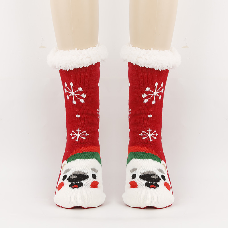 Christmas Women's Slipper Socks, Cartoon Coral Fleece Plush Crew Socks, Mid-Calf Fluffy Floor Socks, Christmas Holiday Cross-Border Edition