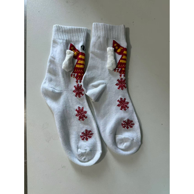 Magnetic Socks Winter Edition Christmas Socks, Red Holiday Stockings with Scarf Design, Decorative Magnetic Big-Eye Hand-Holding Socks, Festive Xmas and Halloween Decor