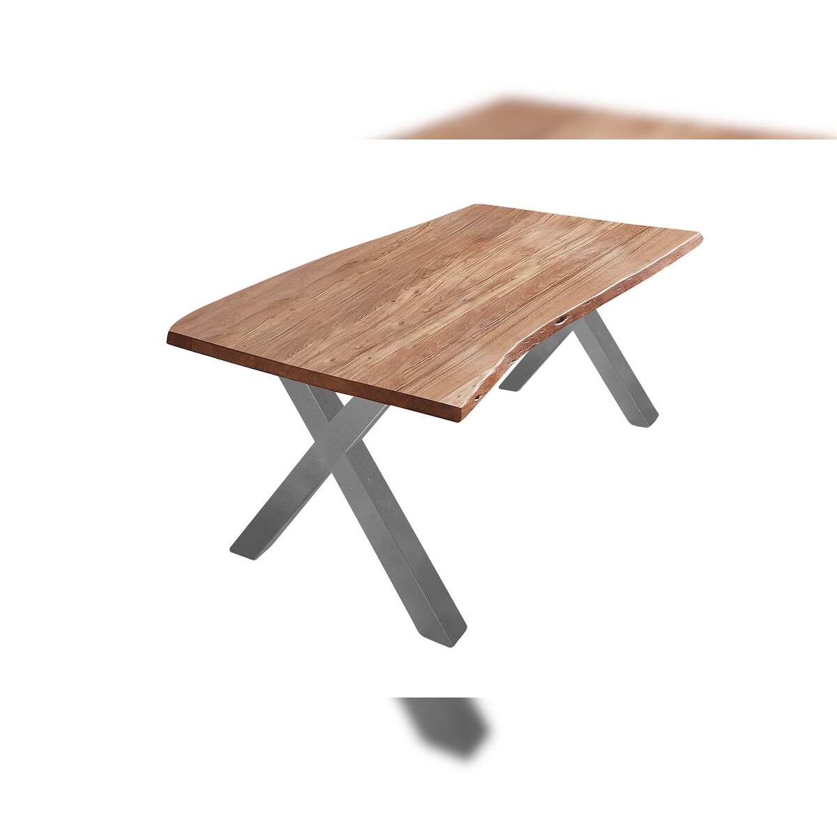 SAM® Esstisch Baumkante massiv Akazie natur 160 x 85 X-Gestell silber XANTEN