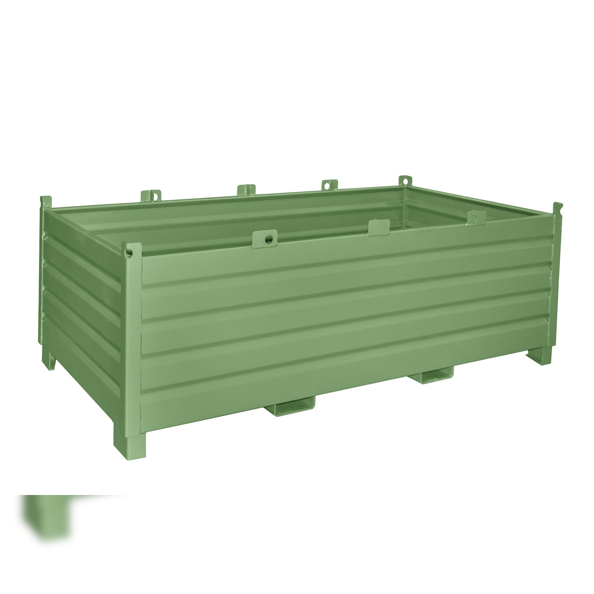 Klappbodenbehälter SB 2000 lackiert RAL6011 Resedagrün Stapler Anbaugerät