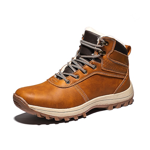 stivali stringati da uomo in similpelle nabuk gialla con colletto imbottito e suola spessa, scarpe casual da lavoro per escursioni, campeggio e uso quotidiano