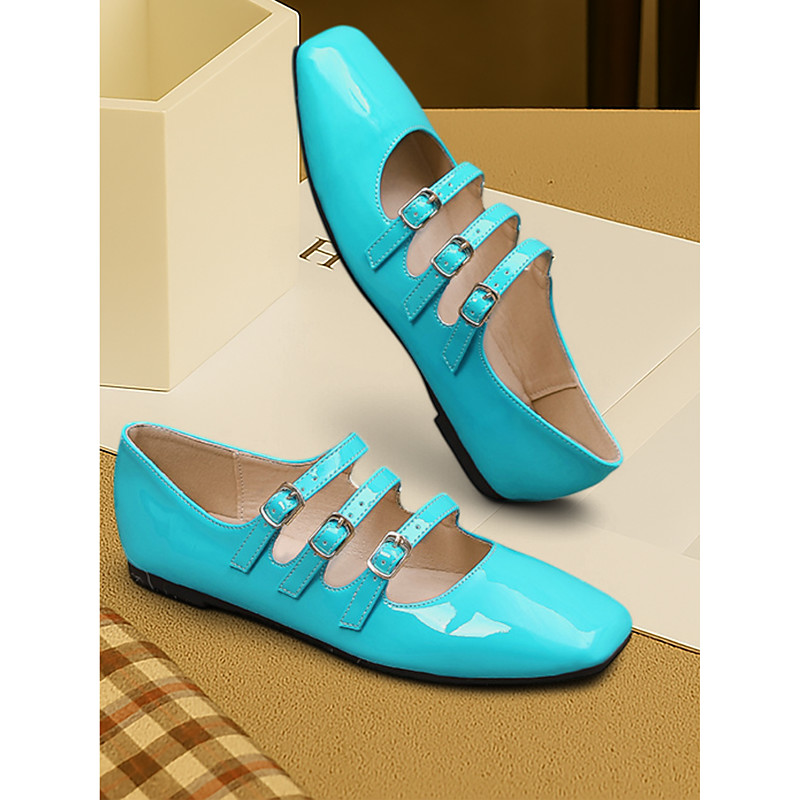 Women's 1930s Vintage Red Patent Leather Mary Jane Flats with Triple Buckle Straps – Retro Classic Dress Shoes for Parties and Daily Wear