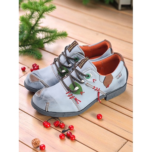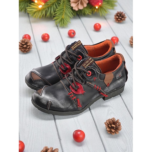 scarpe oxford stringate in pelle verde da donna con dettagli di cuciture rosse, ballerine casual retrò fatte a mano per donne, perfette per outfit natalizi e per l'abbigliamento quotidiano autunnale