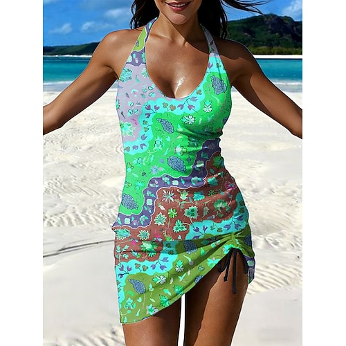 Per donna Costumi da bagno Tankini Due pezzi Gonna Costume da bagno Floreale 3D Vacanza Abbigliamento da Spiaggia Grafico Geometrico Girocollo Senza Maniche Costumi da bagno