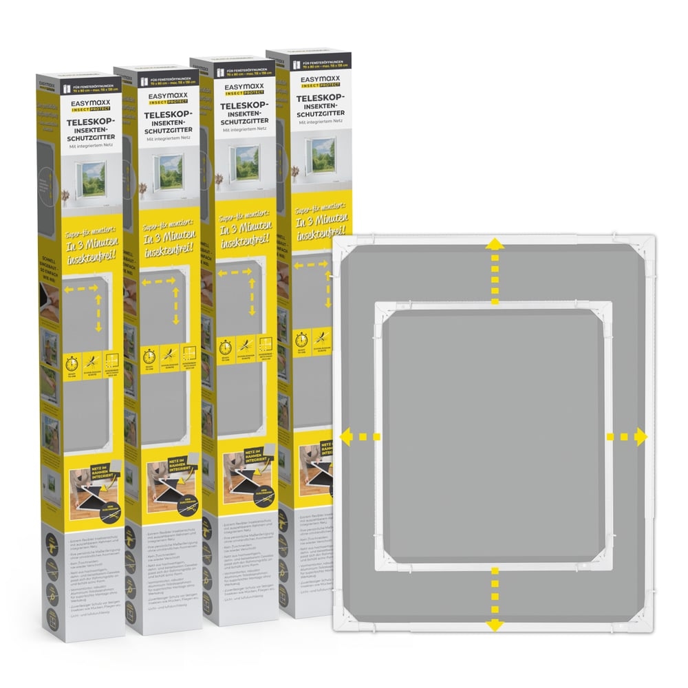 EASYmaxx Insect Protect - Teleskop-Insektenschutzgitter - weiß - 4er-Set