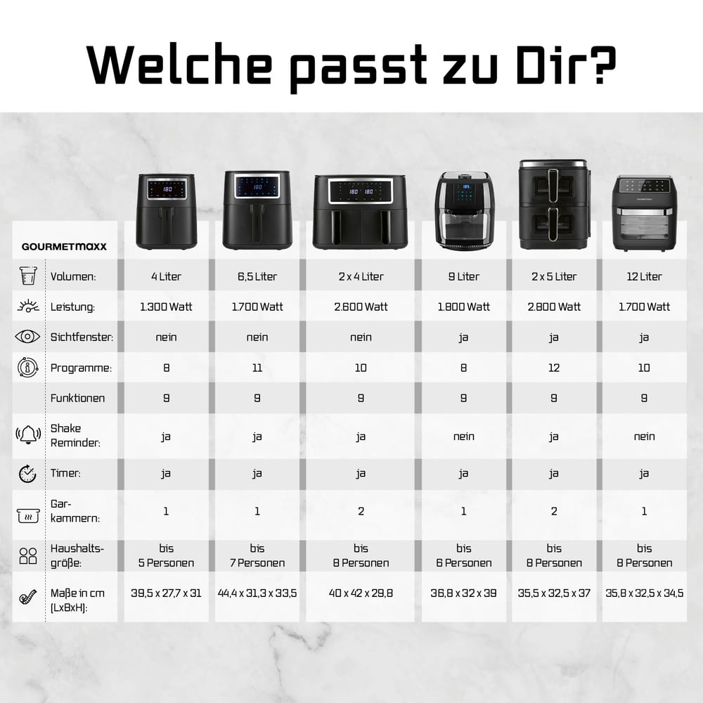 GOURMETmaxx Doppelkammer-Heißluftfritteuse 2 x 4 L - Touch, Timer, 10 Programme
