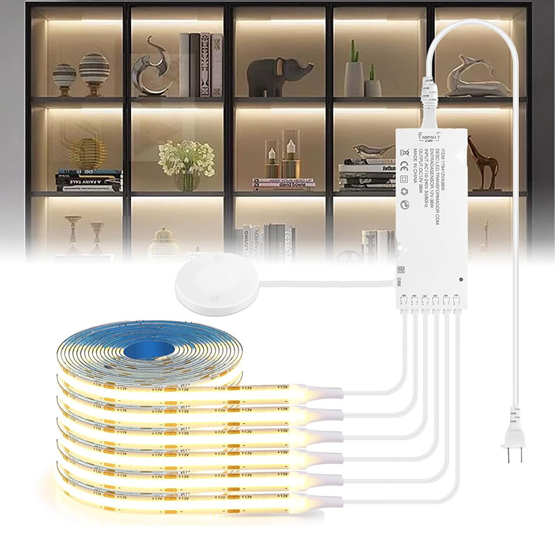 COB LED Strip Light Kit DC12V 6pcs 3.3FT Self-Adhesive LED Light Parallel with Dimmable Touch Sensor Switch Led Light Strip for Wood Slat Wall Panels Home Decor Under Cabinet Strip Light