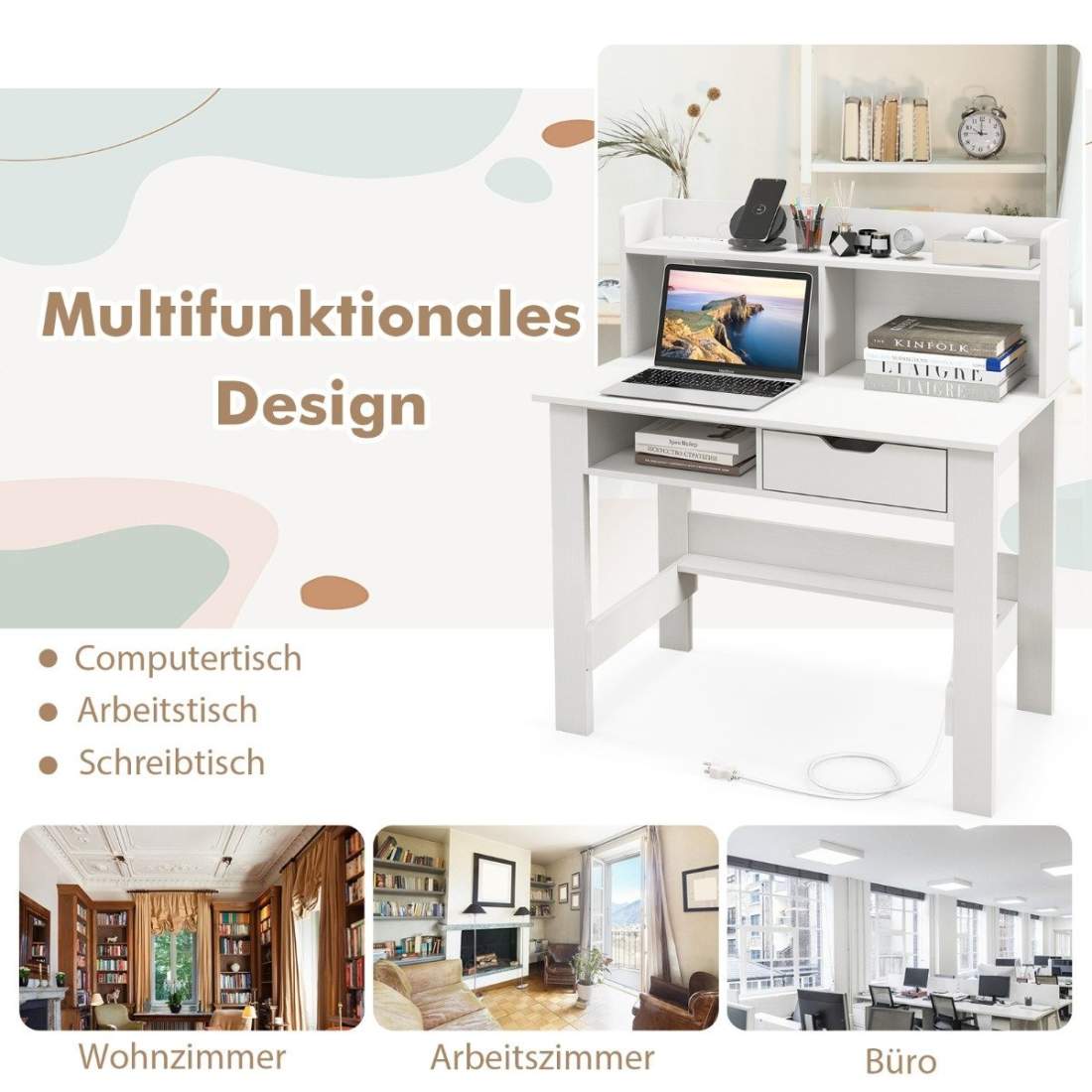 Skrivebord med stikkontakter Lite datamaskinbord med feste 95 x 56 x 109,5 cm hvit