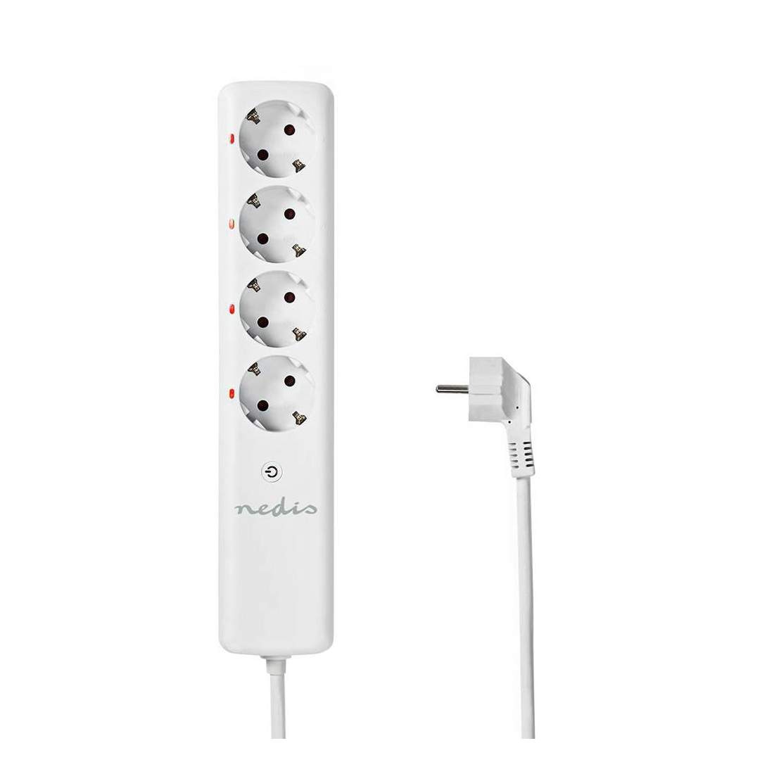 No-Name Stikdåse Med Jord Og Afbryder, 4 Udtag, Hvid