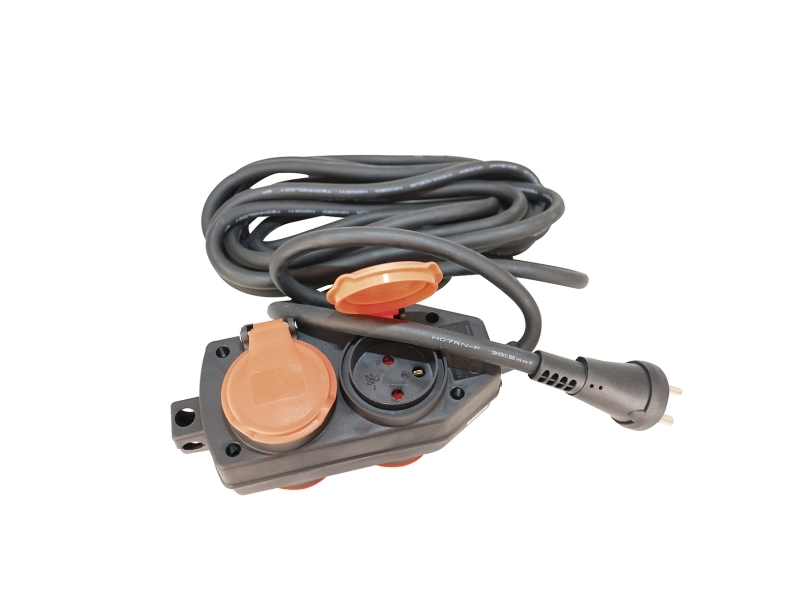 GRIPO kabelsæt neopren 5m med jord og 4x220V udtag 3x1,5mm² - 2071225