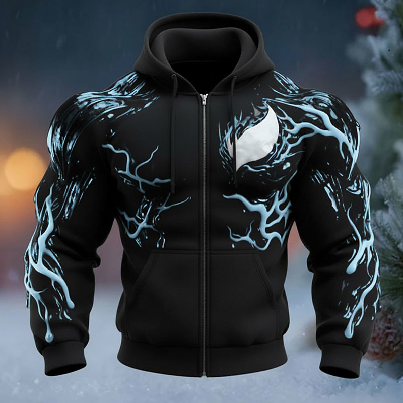 Men's Muscle Optical Illusion Lightning Hoodie Jacket Sweatshirt 3D Fantasy All Over Print Zip Streetwear Vacation Going out Blue Brown Green Gray Zipper Fall Winter Designer S M L XL XXL XXXL