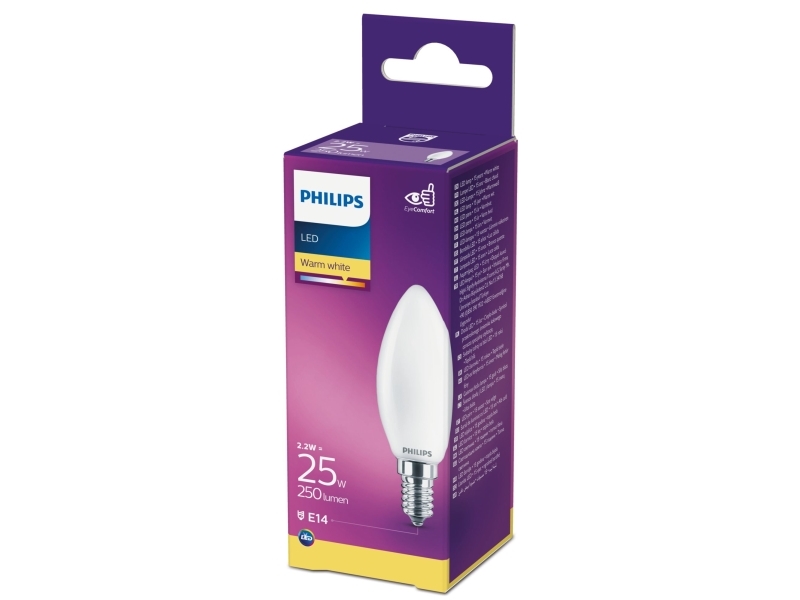 Philips lâmpada LED E14 BA35 luz quente 2.2W 25W