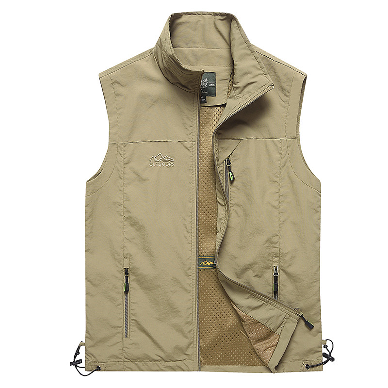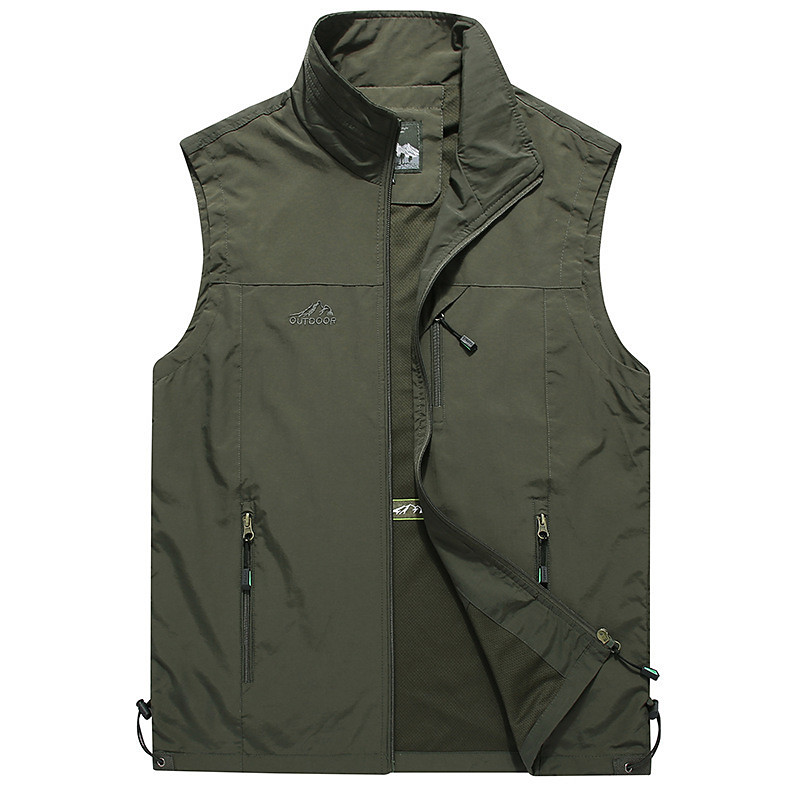 Men's Fishing Vest Sleeveless Vest Outdoor Casual Spring Fall Pocket Polyester Quick Dry Plain Zipper Stand Collar Black Army Green Blue Khaki Vest