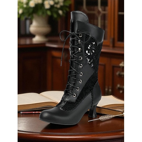 weiße viktorianische Schnürstiefel für Damen bis zur Wadenmitte mit klobigem Absatz – Braut- und Partyschuhe im Vintage-Edwardian-Stil der 1900er