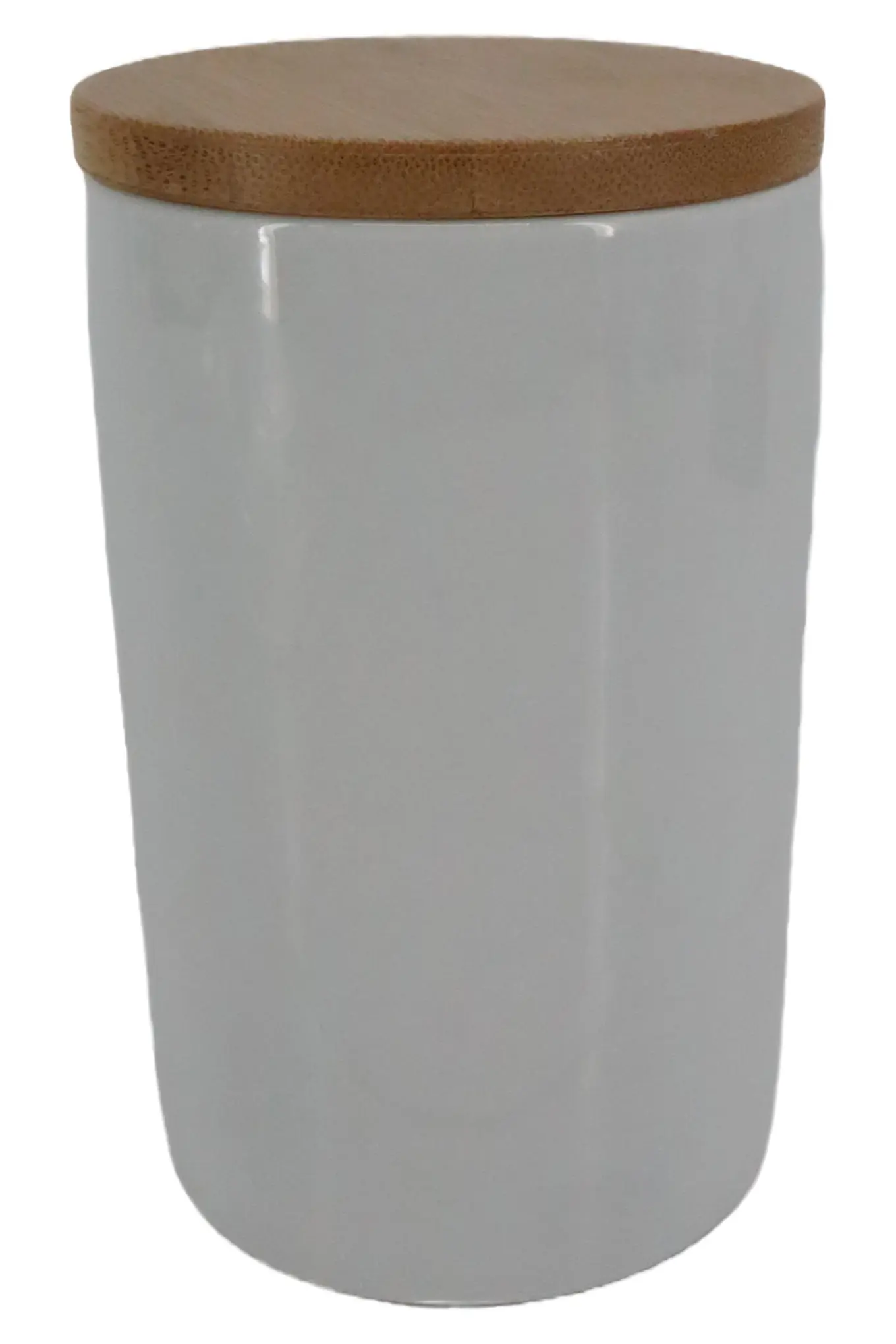 DEPOT Vorratsbehälter 9 cm Weiß Porzellan Holzdeckel
