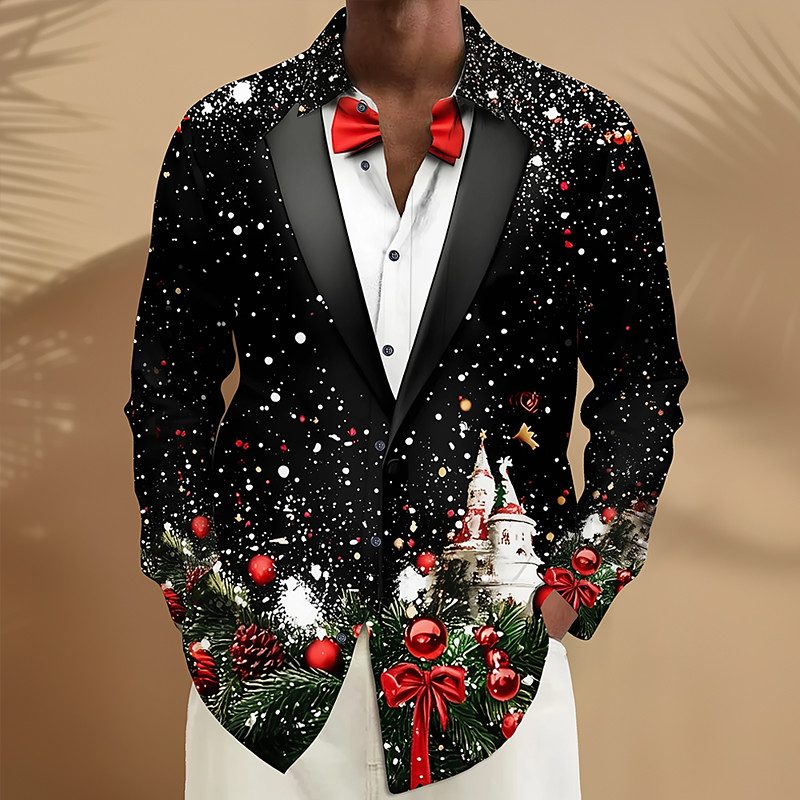 Christmas Men's Christmas Costume Suit Tie Printed Tuxedo Shirt Button Up Shirt Long Sleeve Funny Outdoor Holiday Spring Fall Turndown 3D Print Collared Shirts Black