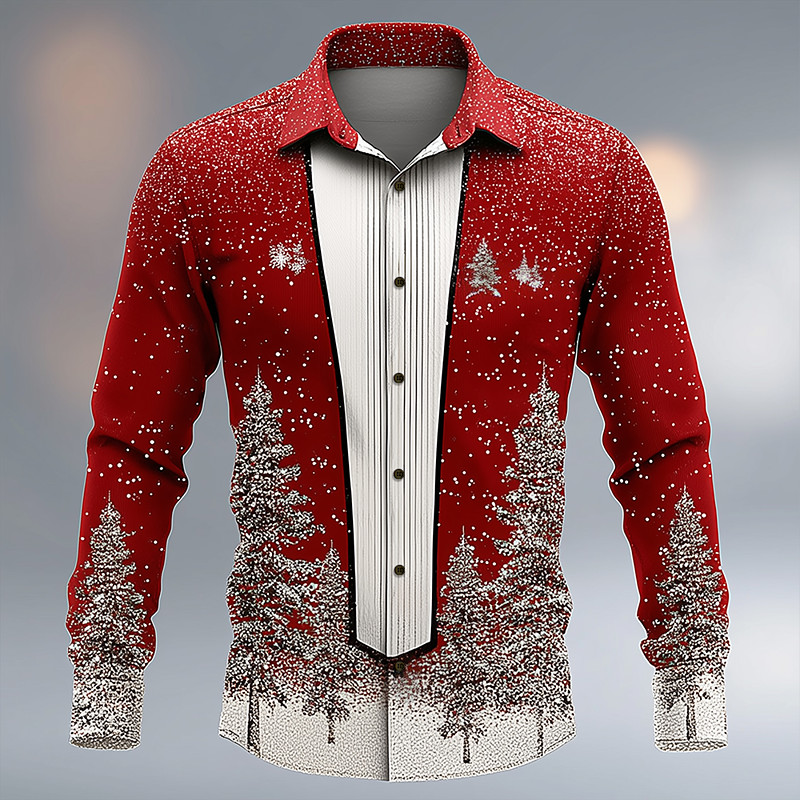 Christmas Men's Christmas Tree Christmas Costume Suit Tie Printed Tuxedo Shirt Button Up Shirt Long Sleeve Funny Outdoor Holiday Spring Fall Turndown 3D Print Collared Shirts Red 1 Red