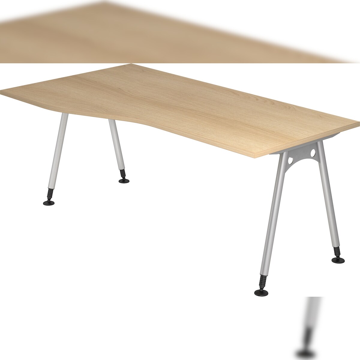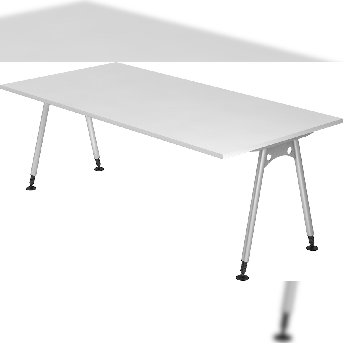 bümö manuell höhenverstellbarer Schreibtisch 200x100 in Ahorn, Gestell in weiß - PC Tisch höhenverstellbar & groß, höhenverstellbarer Tisch Büro,