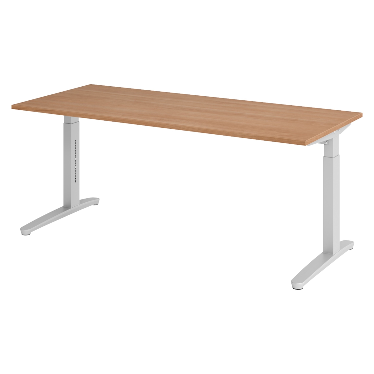 bümö manuell höhenverstellbarer Schreibtisch 180x80 in Nussbaum, Gestell in silber - PC Tisch höhenverstellbar & groß, höhenverstellbarer Tisch Büro,