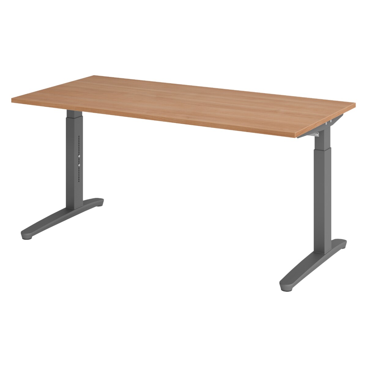 bümö manuell höhenverstellbarer Schreibtisch 160x80 in Nussbaum, Gestell in graphit - PC Tisch höhenverstellbar & groß, höhenverstellbarer Tisch