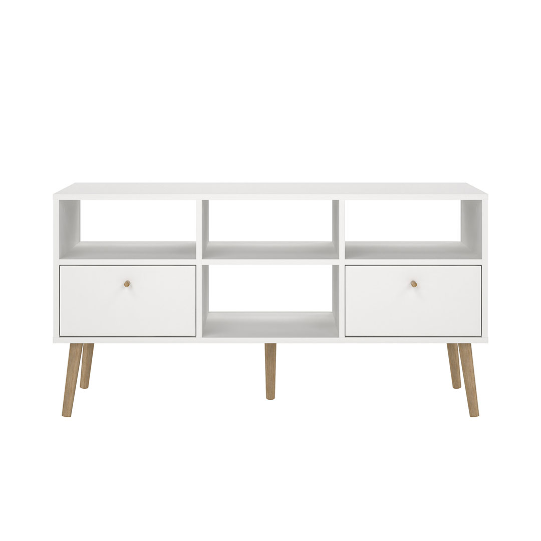 Bodo TV Tisch 2 Schubladen, 4 Ablagen weiß.