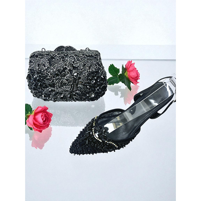 Women's Rhinestone Embellished Mules with Matching Clutch Bag – Elegant Black High Heel Shoes and Bow Detail for Weddings and Special Occasions