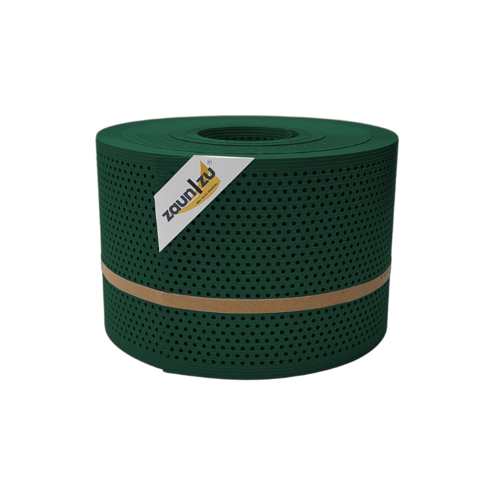 zaun|zu® Sichtschutzstreifen Rille Gelocht 20 Prozent PP Streifen Grün 50m