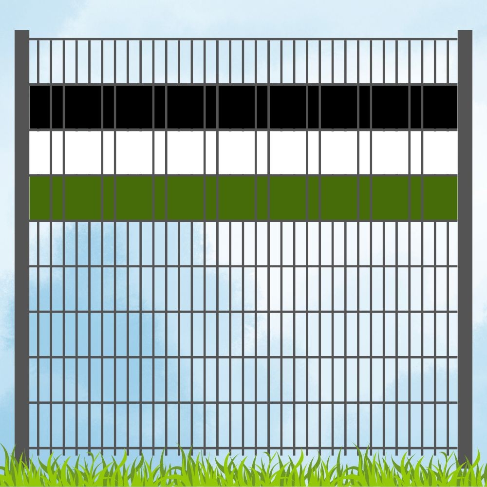 zaun|zu® Sichtschutzstreifen Vereinsfarben Schwarz/Weiß/Grün Volle Streifenbreite