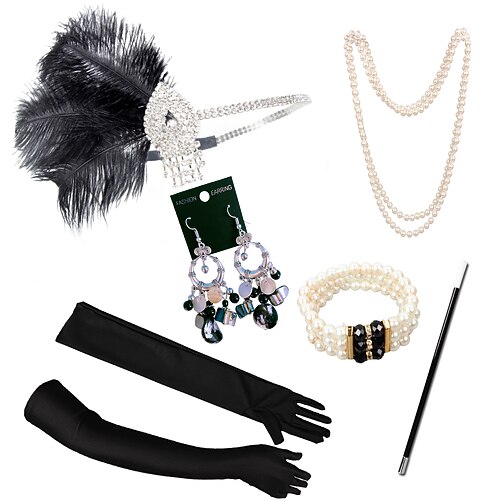 Set Retrò Vintage Anni Ruggenti Anni 1920 Fascia Flapper Copricapo Set di accessori Il grande Gatsby Ragazza Flapper Piuma Costume Per donna Natale Carnevale Mascherata Festa a tema retrò Danza