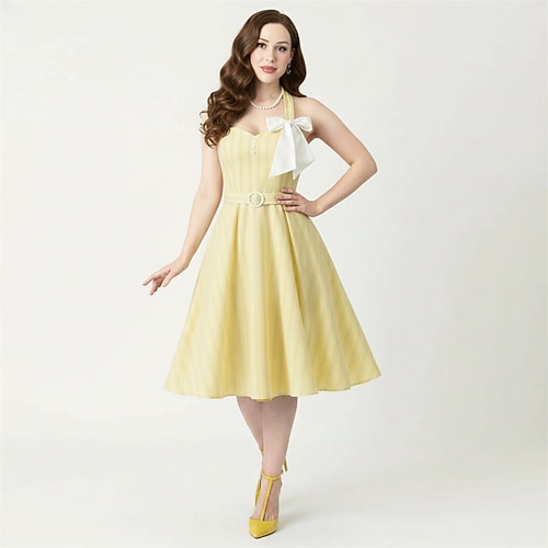Retrò Vintage Anni 1950 Hepburn Midi Vestito Abito a trapezio Vestito Svasato Senza maniche A righe Aderente Svasato Costume Per donna Carnevale San Valentino Casuale Ritorno a casa Festa a tema