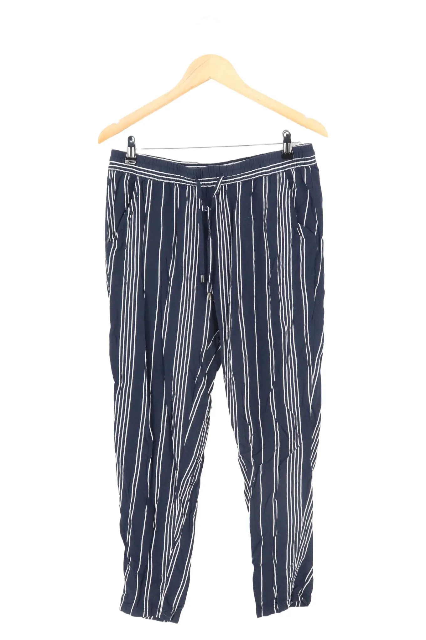 SUBLEVEL Damen Stoffhose Gr. L Blau Gestreift Viskose Lang
