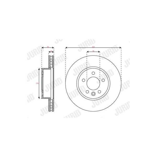 Jarrulevy Tuuletettu, Etuakseli Jurid 563749JC-1 - vw crafter flak/chassi, crafter skåp, grand california camper - OE 2N0615301B