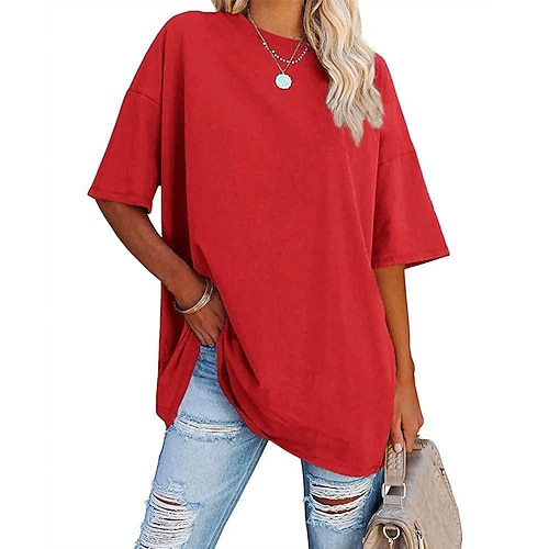 T-shirt girocollo oversize basic per abbigliamento donna top a maniche corte girocollo manica corta nuovo colore tinta unita